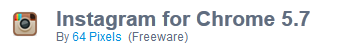 Instagram for Chrome 5.7 Free Download . Review - The Instagram for Chrome extension is a truly helpful tool if you occur to such as seeing your preferred image loaded social networks outlet whilst rested at your desktop. The extension is both light in weight as well as effective, with a slick, but familiar user interface.